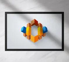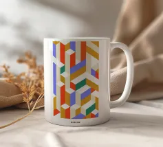 Una vivace disposizione di forme geometriche in vari colori crea un disegno intrigante su uno sfondo di luce soffusa, sottolineando l'arte e la creatività moderne.