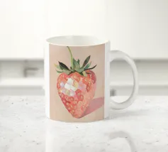 Una singola fragola è al centro di questa opera colorata e moderna. Lo sfondo turchese e rosa con struttura astratta contrasta con la superficie lucida del frutto. L'opera d'arte ricorda la pop art e colpisce per la sua presenza grafica e i suoi colori decisi. Ideale per cucine moderne, spazi di design o come elemento di richiamo in un ambiente creativo.