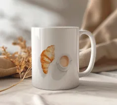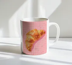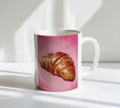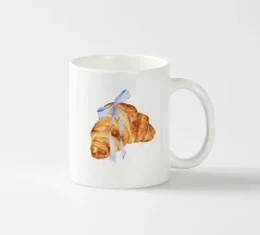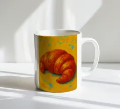 Questo adorabile disegno di croissant presenta un personaggio sorridente con guance rosa e un berretto francese nero. Perfetto per gli amanti delle illustrazioni kawaii e della pasticceria francese, questo motivo è ideale per le colazioni nei bar, nelle panetterie o come affascinante elemento decorativo in cucina. Il design giocoso porta gioia e un tocco di Parigi in ogni stanza.