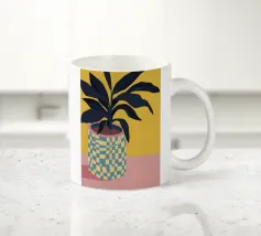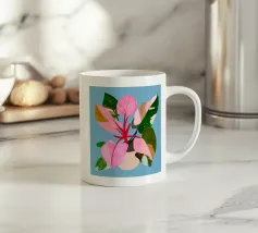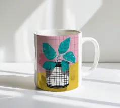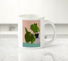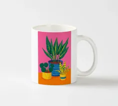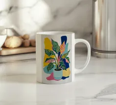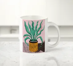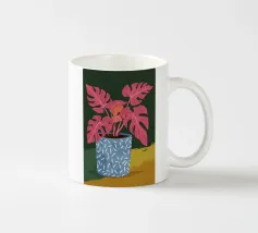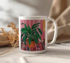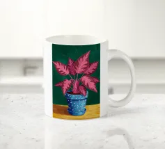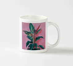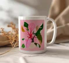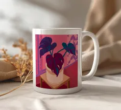 Una pianta di anthurium rosa di grande effetto si trova in un vaso variopinto e decorato su uno sfondo di un vibrante rosa caldo. La composizione è una celebrazione audace ed elegante del colore e delle piante tropicali.