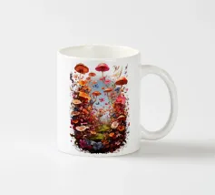 Un motivo affascinante mostra un paesaggio surreale di funghi luminosi che spuntano da uno sfondo colorato e vorticoso nelle vibranti tonalità del giallo, dell'arancione e del rosso. Le forme dei funghi appaiono organiche e ultraterrene allo stesso tempo, mentre le linee fluide e i colori ricchi creano un mondo da sogno psichedelico. La scena ricorda un viaggio fantastico in un universo alieno pieno di energia luminosa e forme mistiche: un invito visivo a meravigliarsi e a immergersi in altre dimensioni.