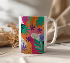 Un motivo audace ed energico che combina la stampa leopardata con fiori e foglie tropicali astratti in una vivace combinazione di colori, creando una fusione selvaggia e alla moda.