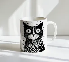 L'ombra di un gatto pieno di vita: Questo motivo gioca con la tensione tra una silhouette chiara e un disegno organico a labirinto. Lo stile ricorda la line art di Keith Haring, ma è più sottile, più giocoso, quasi meditativo. Le innumerevoli microforme invitano a soffermarsi, creando dinamismo in una situazione di stasi. Una dichiarazione visiva per gli spazi creativi e gli amanti dei gatti, in audace equilibrio tra ordine e caos.