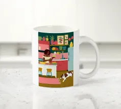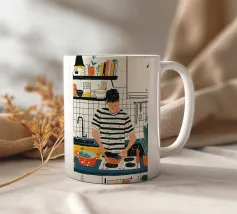 presenta un simpatico gatto in azione in cucina. Questo disegno è perfetto per gli amanti dei gatti e per gli appassionati di illustrazioni dolci e dettagliate.