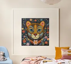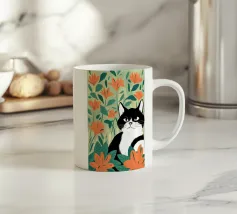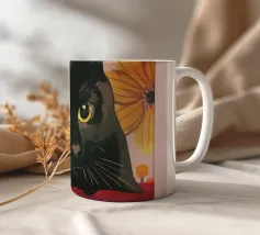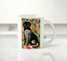 Portate un tocco di giocosa magia nel vostro spazio con questa stravagante illustrazione di gatto nero, ornata da vivaci fiori di ispirazione boho in calde tonalità acquerello. Con il suo fascino incantevole e la tavolozza accogliente, quest'opera d'arte irradia personalità e cuore, rendendola un'aggiunta deliziosa a qualsiasi stanza. Perfetta per gli amanti dei gatti, gli interni boho e le idee regalo uniche, aggiunge un tocco artistico sia all'arte da parete che agli accessori di uso quotidiano.