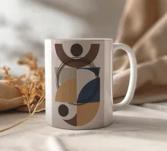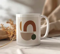 Le forme geometriche sono impilate in una composizione equilibrata. Il disegno è composto da un cerchio e da diversi semicerchi nei toni del nero, del marrone e del marrone scuro.