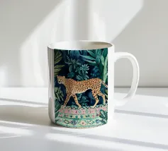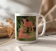 Questo non è un normale safari. È un'avventura rosa ambientata in una lussureggiante foresta tropicale, dove gatti, tigri, leopardi, zebre, giaguari e ghepardi vivacizzano le decorazioni murali con un tocco pop-art. In questo quadro dalle linee raffinate, un ghepardo rosa acceso si adagia tra il fogliame verdeggiante, lasciando che la sua tonalità vivace sia al centro della scena. Le foglie tropicali creano un contrasto sorprendente, rendendo questo pezzo un'attrazione immediata per il salotto o lo studio creativo.