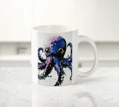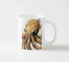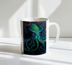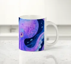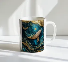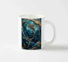 In un mare vorticoso di azzurri dorati, il polpo si muove alla deriva in un mosaico oceanico di verde acqua e blu. Ogni accento dorato sul suo corpo marmorizzato riflette un'eleganza ultraterrena, come se l'oceano stesso avesse intrecciato fili di metallo prezioso nella sua forma.