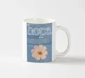 Questa immagine presenta un design sereno ed edificante incentrato sulla parola "speranza". La parola "hope" (speranza) è visualizzata in alto a grandi lettere bianche e in grassetto su uno sfondo di cielo azzurro con nuvole sottili.