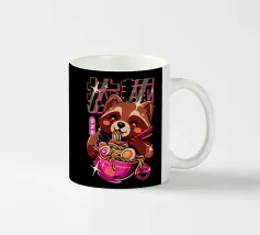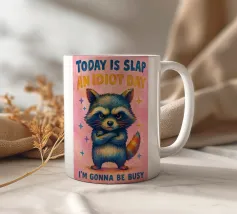Un procione dei cartoni animati vestito con un mantello si trova su un cerchio magico, circondato da candele accese. Il testo sopra e sotto il procione recita umoristicamente: "Non posso evocare un cazzo da darti.