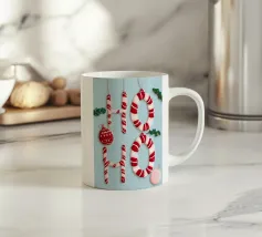 Due bastoncini di zucchero incrociati e ornati con agrifoglio e campanellino. Le parole "I'm hooked on you!" sono scritte sopra in una tipografia giocosa e festosa.