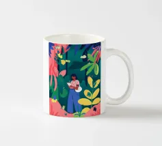 Una persona è seduta su un'altalena in mezzo a piante e fogliame verde. Il loro spirito giocoso è esaltato da un abito a scacchi e da un cappello a tesa larga, che sottolineano l'avventura.