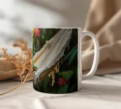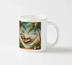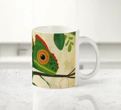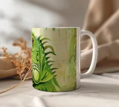Questo camaleonte si è adattato magistralmente alla modalità relax. Con le zampe allentate sul bordo dell'amaca e uno sguardo di pura soddisfazione, è la prova vivente che a volte il pisolino è uno stile di vita. Questa stampa fa parte della serie "Jungle Hammock Tales" - relax estivo con una strizzatina d'occhio.