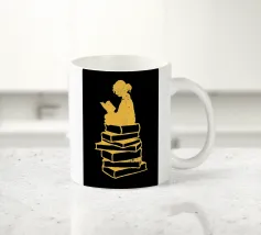 Un bambino è seduto e legge un libro sopra una grande matita, circondato da un arcobaleno colorato e da stelle. Le frasi "La conoscenza è potere" e "Apri un libro, apri la tua mente" sottolineano l'importanza della lettura e dell'istruzione.