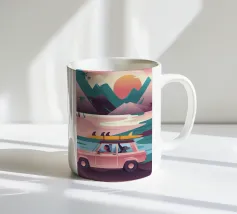 Sperimentate la massima libertà e avventura con le nostre opere d'arte vintage. Sentite il sole sulla pelle mentre guidate lungo la costa in una classica decappottabile. Immaginate il vento tra i capelli mentre una pattinatrice spensierata scivola sull'oceano. Questo capolavoro cattura la nostalgia di un viaggio in auto retrò e vi avvicina alla bellezza di una vita senza limiti. Perfetto per ogni appassionato di arte e avventura".