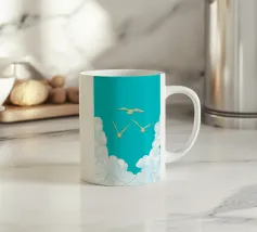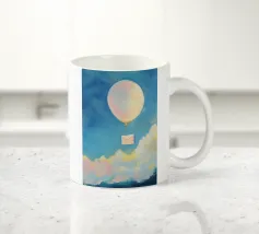Un'illustrazione sognante e piena di luce di due aquiloni bianchi che si librano in un cielo azzurro, con delicate code di nastro che scivolano vicino al sole splendente. Con una texture pastello e una tavolozza pacifica, quest'opera d'arte cattura l'essenza della libertà, della nostalgia e della gioia tranquilla. Perfetto per asili nido, spazi ariosi e per chiunque sia attratto da scene di serenità edificanti e minimaliste.