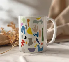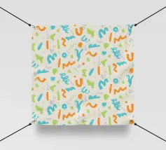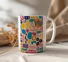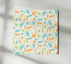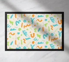 Questo disegno presenta una composizione astratta di linee e forme fluide in colori vivaci. Gli elementi sono disposti in modo armonioso e conferiscono al disegno un aspetto dinamico e giocoso.