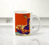 Questo affascinante poster motivazionale combina una fotografia giocosa con un'estetica vintage. L'intensa combinazione di colori bicolore, arancione brillante e viola intenso, ricorda le serigrafie psichedeliche degli anni Sessanta. Il gatto curioso che raggiunge la farfalla monarca simboleggia la gioia infantile e l'esperienza consapevole. Lo slogan "MAKE YOUR DAY" sottolinea il messaggio positivo senza essere invadente. L'elaborazione dell'immagine in formato poster conferisce all'opera una chiarezza grafica. Una dichiarazione sulla gioia di vivere, sulla curiosità e sulla ricerca della felicità nei piccoli momenti - ispiratrice e decorativa.