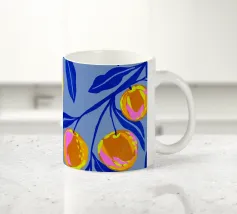 Aggiungete un'esplosione di fascino succoso e agrumato al vostro spazio con questa illustrazione audace e giocosa di vibranti mandarini. I frutti di colore arancione brillante, le foglie blu intenso e lo sfondo rosa tenue creano un contrasto moderno e accattivante che irradia calore ed energia. Questo motivo contemporaneo di frutta è perfetto per gli amanti dei disegni freschi e allegri e dell'estetica mediterranea.