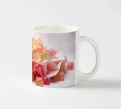 Una varietà di marshmallow colorati sono disposti in modo disordinato, creando una disposizione invitante e giocosa con uno sfondo luminoso e schizzato che esalta l'atmosfera allegra.