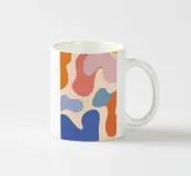 Un'armoniosa composizione astratta di forme organiche sovrapposte in una morbida e calda tavolozza di colori pastello. L'opera d'arte è delicata e moderna, con una qualità ritmica e rilassante.