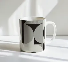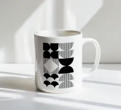 Il design pulito incontra la tensione visiva: questo motivo minimalista in bianco e nero combina forme geometriche come semicerchi, rombi e griglie di linee per creare un'opera d'arte moderna. Ideale come poster, cuscino, maglietta o murale - perfetto per gli amanti del Bauhaus, della metà del secolo e dei design monocromatici.