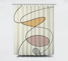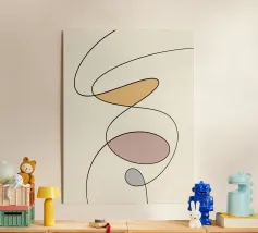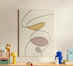 Linee semplici si curvano e si intersecano per creare un disegno astratto dall'estetica minimalista. Le forme piene dei toni della terra sono sovrapposte a linee nere su uno sfondo color crema, evocando un senso di moderna semplicità.
