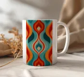 Quest'opera d'arte è un'illusione ottica ipnotica e un omaggio all'arte psichedelica e all'op art della fine degli anni '60 e dell'inizio degli anni '70. Forme curve e fluide in rosso fiammeggiante e arancione caldo incontrano i toni freddi del turchese e del blu-verde, creando una tensione dinamica, ardente ma acquatica. La simmetria verticale e i motivi stratificati a forma di goccia ricordano i disegni iconici di tessuti e carte da parati dell'epoca. Il motivo crea un'incessante attrazione visiva e sembra quasi respirare. Un richiamo visivo energico e ipnotico.