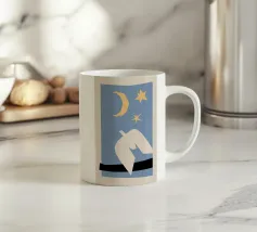 Quest'opera d'arte presenta un cavallo nero stilizzato in forma grafica e audace su uno sfondo neutro. Circondato da semplici foglie verdi astratte e da forme celestiali simili a stelle, il pezzo ha una qualità mitica e primordiale. La composizione minimalista enfatizza la potente silhouette del cavallo.