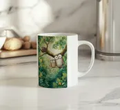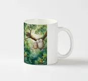Un'affascinante scena di una mamma gufo che coccola il suo piccolo in una vivace giungla tropicale. Questo dolce disegno faunistico dona calore e un delicato tocco di natura a qualsiasi ambiente.