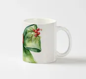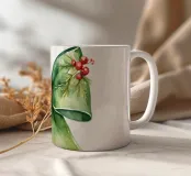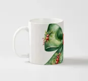 Festoso fiocco acquerellato in verde intenso, decorato con bacche rosse e rami di abete. Questo elegante motivo natalizio dona calore e fascino festivo a qualsiasi casa, ideale per murales, tazze, cuscini o idee regalo per la stagione invernale.