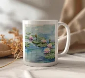 Questo splendido acquerello cattura l'essenza pacifica di uno stagno illuminato dal sole e ornato da delicate ninfee. I fiori bianchi e rosa fluttuano con grazia sull'acqua blu, calma e riflettente, circondati da ampie ninfee verdi. Le delicate pennellate e l'armoniosa miscela di colori evocano un senso di tranquillità e bellezza naturale, rendendolo un pezzo perfetto per chiunque voglia aggiungere un tocco di serenità alla propria casa. Quest'opera d'arte è una celebrazione della semplice eleganza della natura e dei momenti di tranquillità che si possono trovare in uno stagno da giardino.