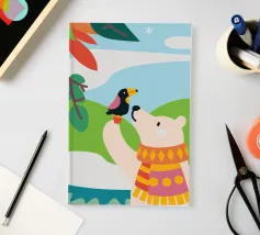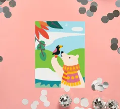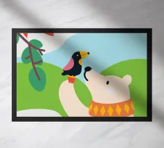 questa affettuosa illustrazione "Bear and Bird"! Questo affascinante disegno raffigura orsi e uccelli che giocano insieme, creando un'atmosfera calda e accogliente per tutta la famiglia.