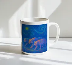 Questa incantevole opera d'arte raffigura una coppia di orsi polari che si ergono fieri sul ghiaccio alla deriva, sotto un cielo notturno luminoso e vorticoso. I blu freddi si fondono con morbidi riflessi dorati per creare un'atmosfera serena ma potente, che evoca la bellezza e la fragilità dell'Artico. Le pennellate strutturate conferiscono alla scena una profondità onirica, mentre il cielo luminoso aggiunge movimento e meraviglia. Perfetto per gli amanti della natura, per i collezionisti di arte naturalistica e per gli appassionati di paesaggi d'atmosfera, questo disegno porta calma, colore e ispirazione in qualsiasi spazio abitativo moderno o ambiente creativo.