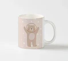 Questo simpatico motivo mostra un allegro orso che fluttua dolcemente nell'aria con un paracadute colorato. I tenui colori beige e pastello in combinazione con i motivi delicati e le nuvole minimaliste conferiscono a questa illustrazione un fascino senza tempo. Un disegno perfetto per gli amanti dei simpatici animali e degli scenari da sogno.Simpatico motivo con un orso fluttuante