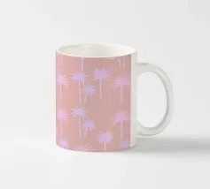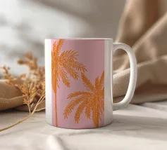 Splendido motivo di palme nei colori neon giallo e rosa su uno sfondo neutro beige latte.