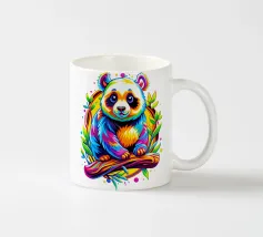 Illustrazione colorata di un simpatico panda con un ramo di bambù. Il motivo giocoso combina cordialità, calma e aree di colore moderne - ideale per i fan dei panda e per i disegni creativi di animali.