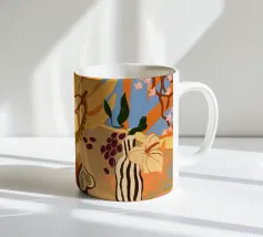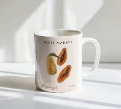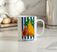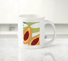 Un'illustrazione vivace e stilizzata di papaya a fette con foglie verde scuro su uno sfondo chiaro. Il motivo ripetitivo e il colore arancione brillante creano un'atmosfera fresca e tropicale.