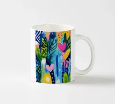 Un patchwork allegro e commovente di piante stilizzate, motivi vivaci e un grande cuore affettuoso. Questa opera d'arte eclettica è una gioiosa celebrazione dell'amore, della crescita e della bellezza artigianale.