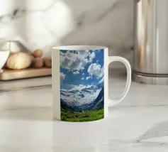 Un sentiero sterrato si snoda attraverso un campo aperto verso un piccolo villaggio himalayano, annidato alla base di imponenti montagne innevate. Due escursionisti si dirigono verso l'insediamento, il loro viaggio è incorniciato da un terreno accidentato e dal vasto cielo sovrastante. Il contrasto tra le tonalità della terra in primo piano e le cime ghiacciate sullo sfondo evidenzia la cruda bellezza della regione dell'Annapurna.