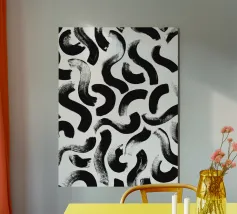 Quest'opera d'arte combina pennellate dinamiche in bianco e nero che trasmettono un senso di movimento ed energia. Le linee curve creano un ritmo unico che attira lo sguardo e incarna il minimalismo moderno. Perfetta per arredare spazi abitativi, uffici o gallerie che vogliono enfatizzare uno stile contemporaneo. Le forme astratte aggiungono carattere all'ambiente e creano un'atmosfera stimolante.
