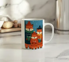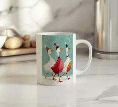 Questa festosa opera d'arte natalizia raffigura quattro giocose oche che indossano cappelli e sciarpe a maglia colorate e che danzano gioiosamente insieme in una foresta innevata di pini. Dipinto a mano in morbido acquerello, cattura lo spirito allegro degli animali del bosco in inverno. Perfetto per tessuti, carte da parati e accoglienti progetti stagionali, questo affascinante disegno aggiunge calore vintage e stravaganza alle tradizioni natalizie. Create da Uta Naumann, le oche portano la magia e l'allegria nostalgica delle feste, rendendole una scelta deliziosa per le celebrazioni festive, l'artigianato invernale e le decorazioni ispirate al bosco.