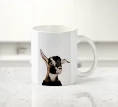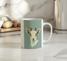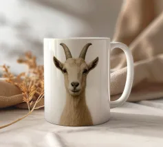 Immergetevi nel fascino rustico di questa splendida fotografia con un maestoso montone. Questa accattivante stampa di animali da fattoria è perfetta per gli amanti degli animali e per chiunque voglia aggiungere un tocco di atmosfera rurale al proprio arredamento.