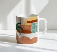 Motivo moderno di metà secolo ispirato ai pavimenti e ai murales in piastrelle di metà secolo. Linee eleganti, forme semplici, texture rumorose e palette di colori pastello.