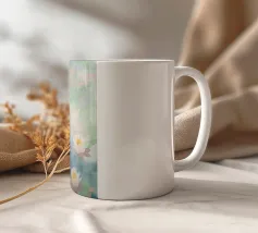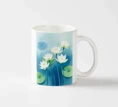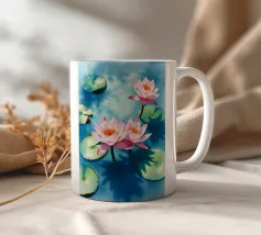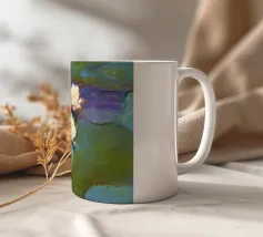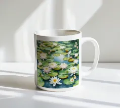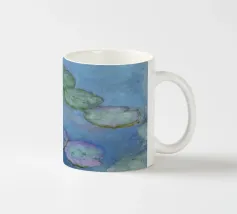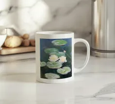 Questo elegante dipinto a olio mostra romantiche ninfee in morbide tonalità verde pastello che si riflettono nell'acqua, catturando la bellezza della natura in un lago armonioso.