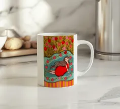 Una persona è seduta vicino a uno stagno, immergendo i piedi nell'acqua mentre legge un libro. Il verde circostante e l'acqua calma creano un ambiente tranquillo.
