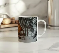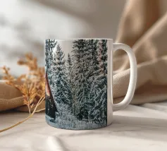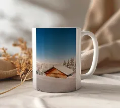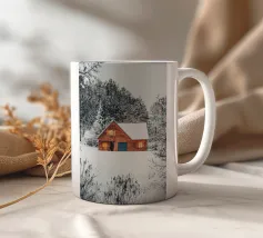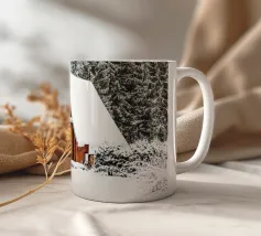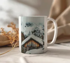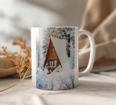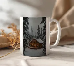 Questo affascinante motivo mostra una rustica capanna di legno circondata da alberi innevati e da una profonda magia invernale. Le calde tonalità del legno della facciata contrastano magnificamente con il bianco brillante della neve, creando un'atmosfera invitante e tranquilla. Perfetto per opere d'arte da parete, cuscini o tazze, questo disegno porta l'intimità e il romanticismo di una capanna invernale direttamente a casa vostra. Ideale per gli amanti della natura, per i fan dello stile scandinavo e per chiunque apprezzi la magia dell'inverno.