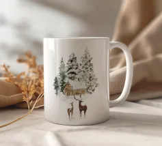 Questo motivo idilliaco mostra una piccola casetta di legno in una foresta innevata, circondata da maestosi abeti, da una leggera nevicata e da un limpido ruscello. Calde nuvole di fumo si levano dal camino e creano un'atmosfera tranquilla e accogliente. Il romantico motivo invernale combina natura, tranquillità e sicurezza: ideale per wall art, poster, tazze, cuscini o cover per cellulari. Perfetto per chi ama l'arte invernale, i paesaggi innevati, le capanne idilliache, lo spirito natalizio, le decorazioni invernali, le idee regalo e i motivi naturalistici d'atmosfera.