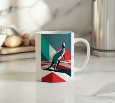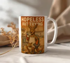 Un allegro canguro si erge su un'ombra blu, accompagnato dal testo "Rooting for You!". Lo sfondo è marrone pieno, per evidenziare il messaggio positivo.
