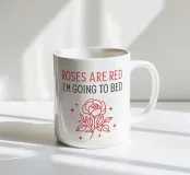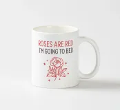 Un messaggio umoristico con un gioco di parole su una filastrocca classica. Sotto il testo, la semplice sagoma rossa di una rosa è circondata da piccole stelle.